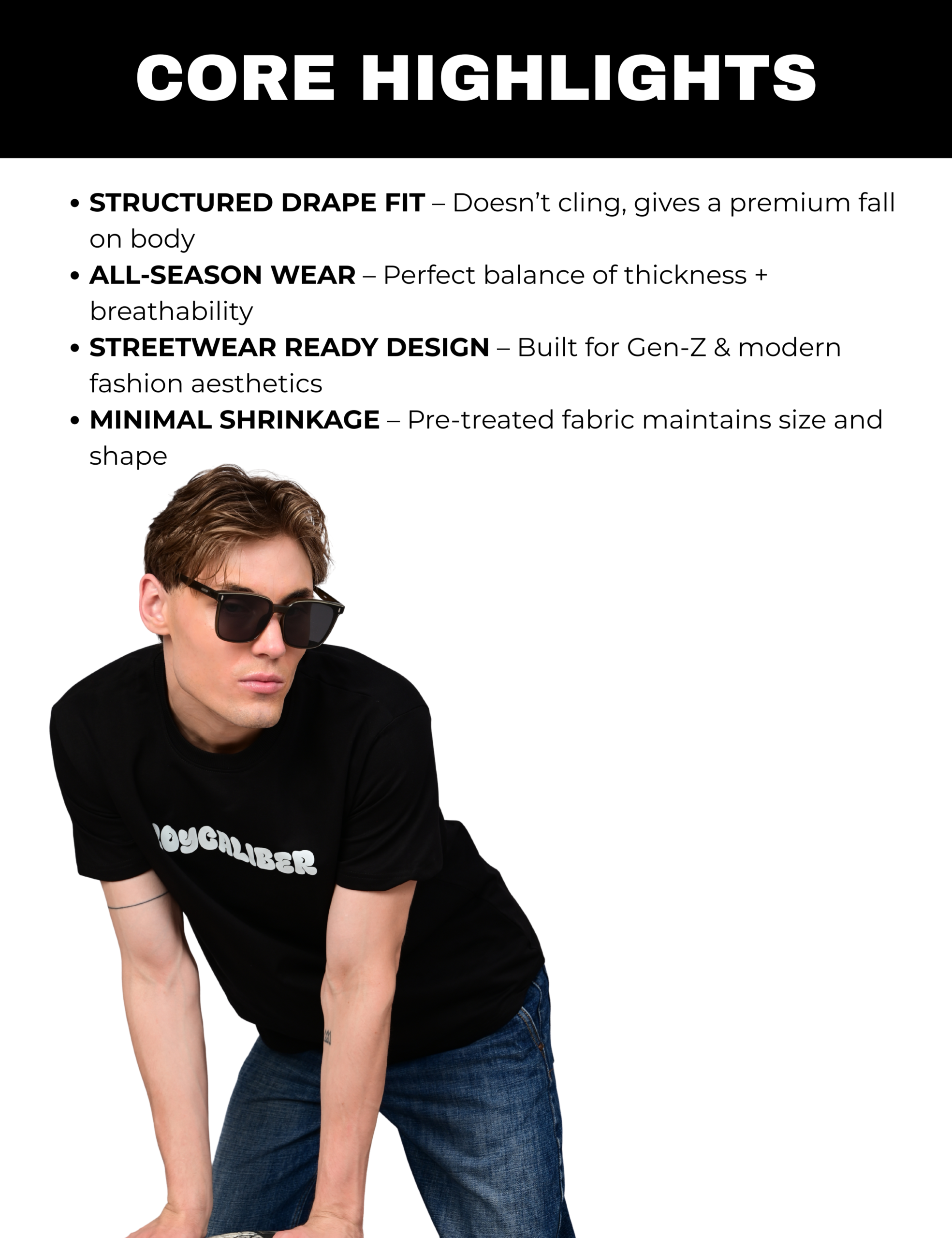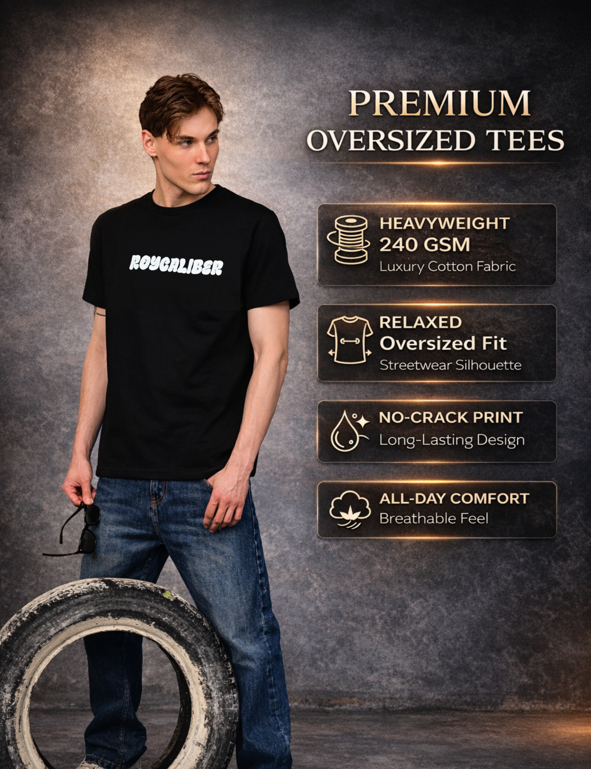 Own the streets in the Roycaliber Raptor oversized black T‑shirt, featuring a powerful golden raptor back print and bold front logo on a soft, relaxed unisex fit for all‑day comfort and style.